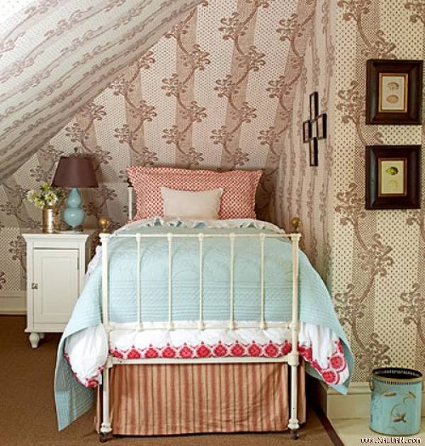 Trần nhà thường là khu vực bị bỏ quên và ít được mọi người chú ý. Tuy nhiên, trang trí cho trần nhà có thể thay đổi rất lớn đến không khí trong phòng. Dùng giấy dán tường trang trí trần tạo cảm giác như căn phòng rộng rãi hơn, bắt mắt hơn. “Bí kíp” này rất thích hợp áp dụng cho phòng của các em bé vì trẻ sẽ dành phần lớn thời gian để nằm và nhìn ngắm trần nhà.