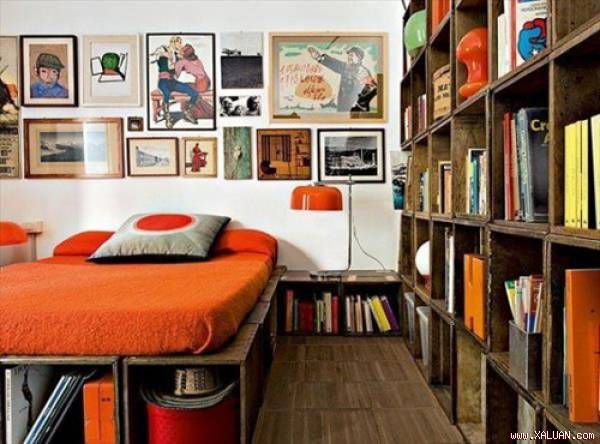 | Vách ngăn tương đối giữa các phòng thanh lịch và có nhiều chỗ để sách, đồ trang trí, cây xanh. |